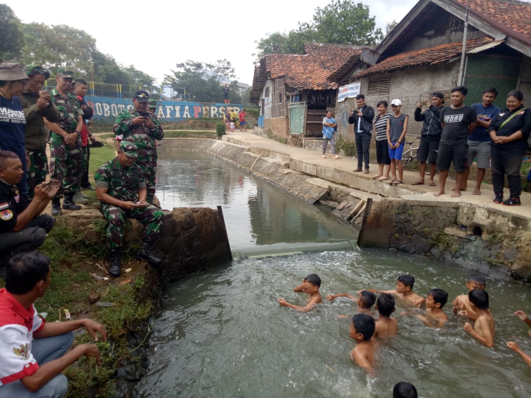 Kolonel Yusep Dampingi Ceria Anak Anak Berenang Di Sungai Cikeruh Rancaekek Sorot Nusantara