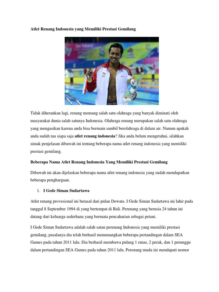Atlet Renang Indonesia Yang Memiliki Prestasi Gemilang Docx