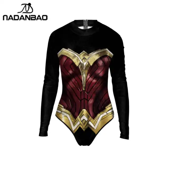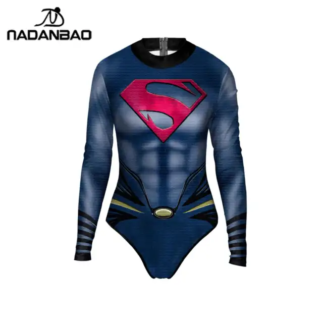 Nadanbao Justice League Film Super Pahlawan Heran Wanita Pakaian Renang Superman Biru 3d Cetak Lengan Panjang Baju Renang Pantai Satu Potong Pakaian Aliexpress
