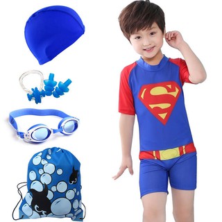 Ase 2 10y Superman Printed Design Kids Boy Swimming Suits Swimwear 2 Piece Set Baju Renang Budak Lelaki Lazada