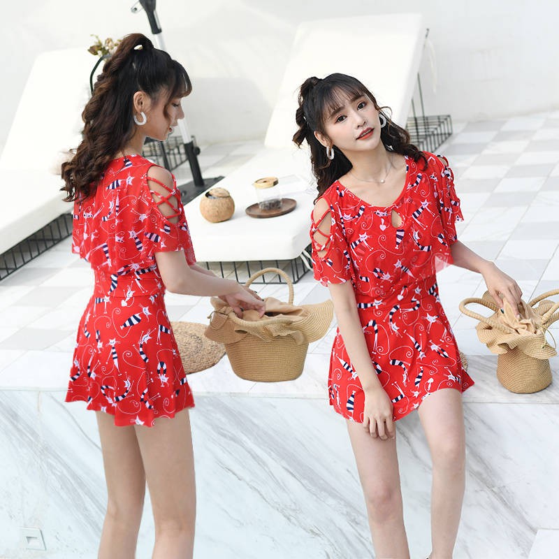 Model Merah Bersih Baju Renang Wanita Konservatif Wanita Gadis Ukuran Besar Versi Korea Penutup Perut Baju Renang Ibu Se Shopee Malaysia