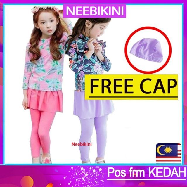 Swimming Suit Girl Free Cap Baju Renang Budak Perempuan Shopee Malaysia