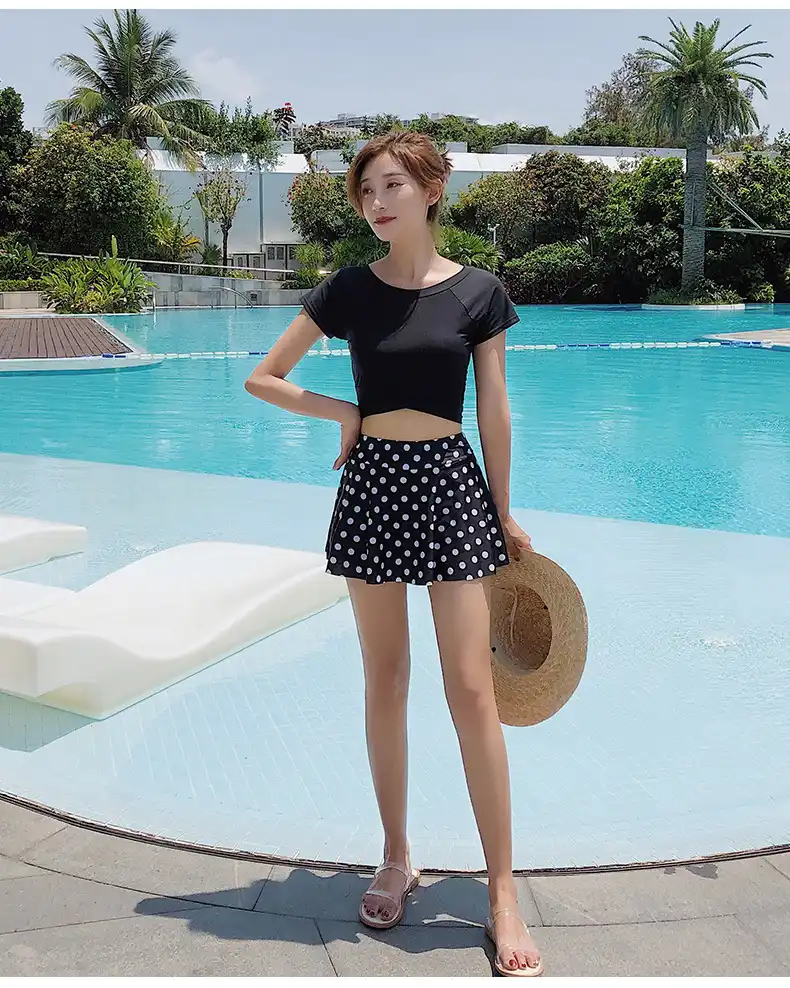 Baju Renang Wanita Membagi Pakaian Renang Lengan Pendek Konservatif Atasan Rok Shopee Indonesia