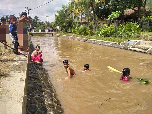 Bahagianya Bocah Bocah Kampung Ini Berenang Di Sungai Pinggir Jalan Seperti Di Waterboom Tribun Kaltim