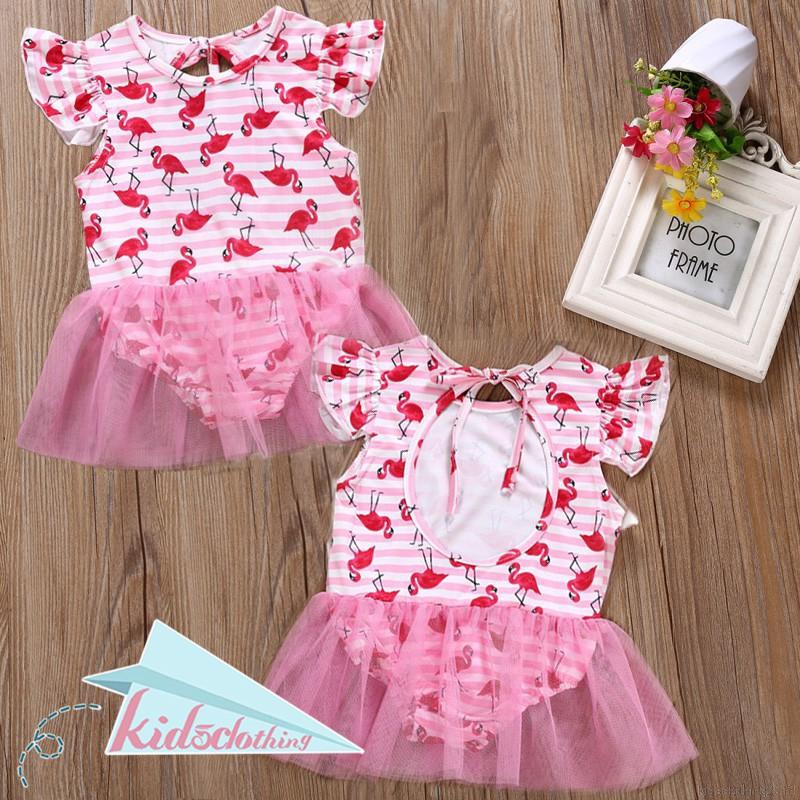 Bayi Anak Anak Gadis Kartun Flamingo Gambar Bikini Bayi Gadis Rumbai Biru Bergaris Pakaian Renang Satu Potong Pakaian Renang Pantai Baju Renang Aliexpress
