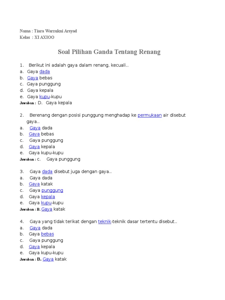 Soal Penjaskes Tentang Akuatik Nama Ana Sarah Dea Delinda Kelas Xi Mipa 3