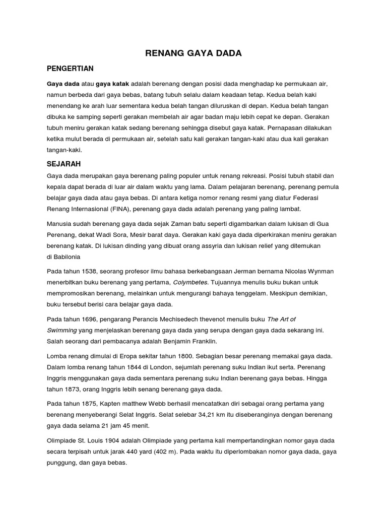 Doc Pengertian Renang Gaya Dada Katak Muhammad Miftah Academia Edu
