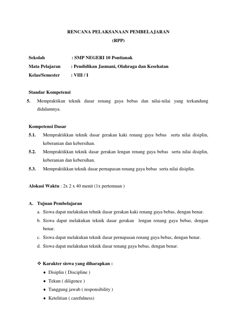 Rpp Renang Gaya Bebas Kurikulum 2013 Guru Ilmu Sosial