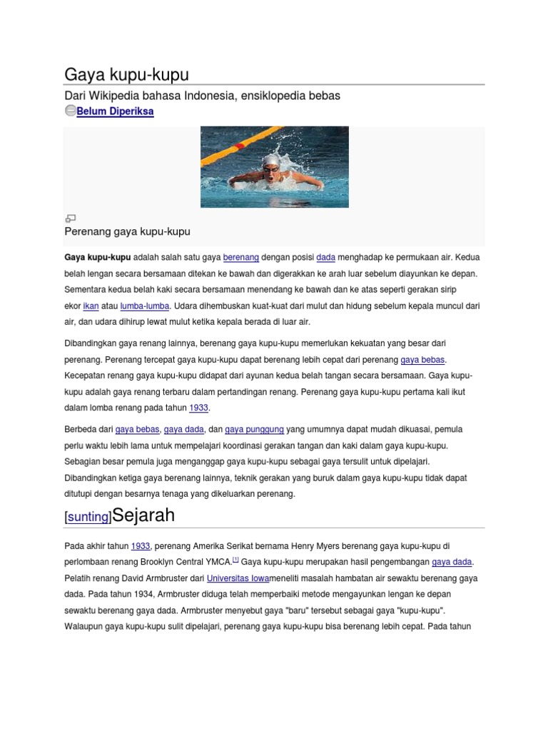 Renang Gaya Kupu Kupu Pengertian Sejarah Teknik Lengkap