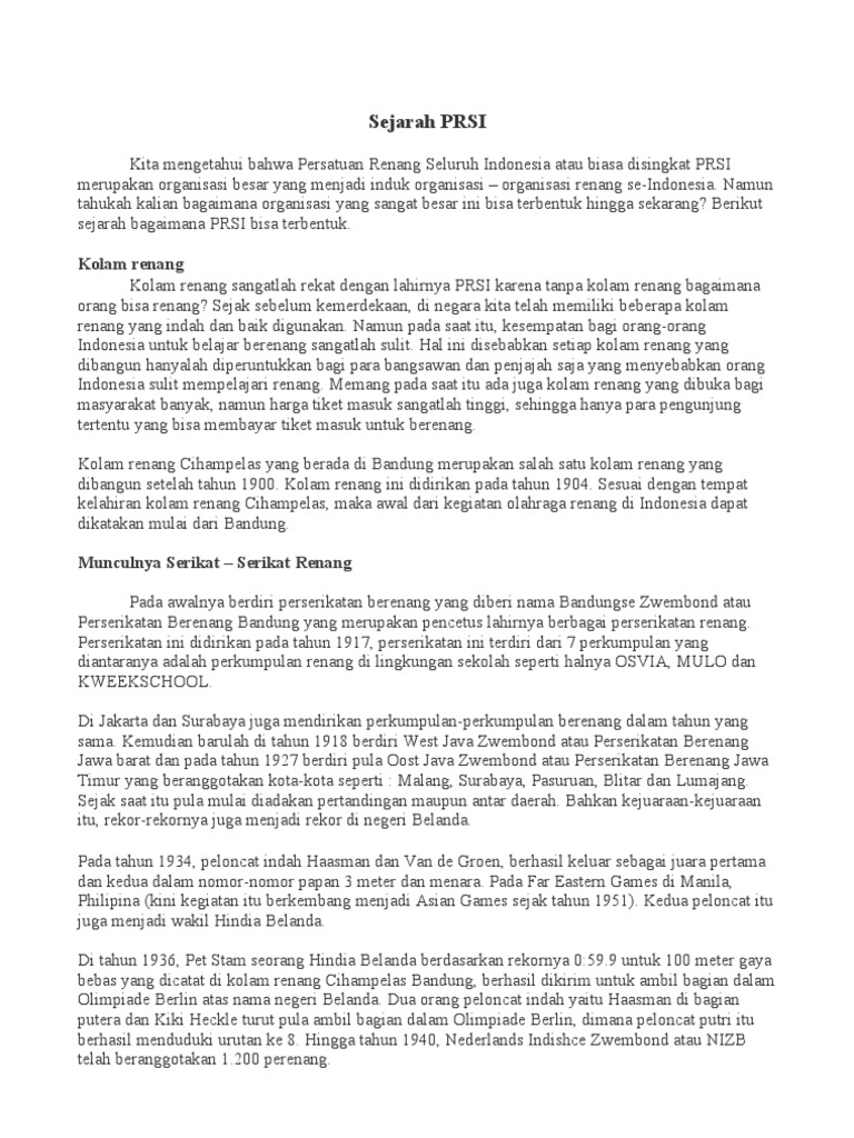 Penjelasan Singkat Sejarah Induk Organisasi Renang Indonesia Prsi