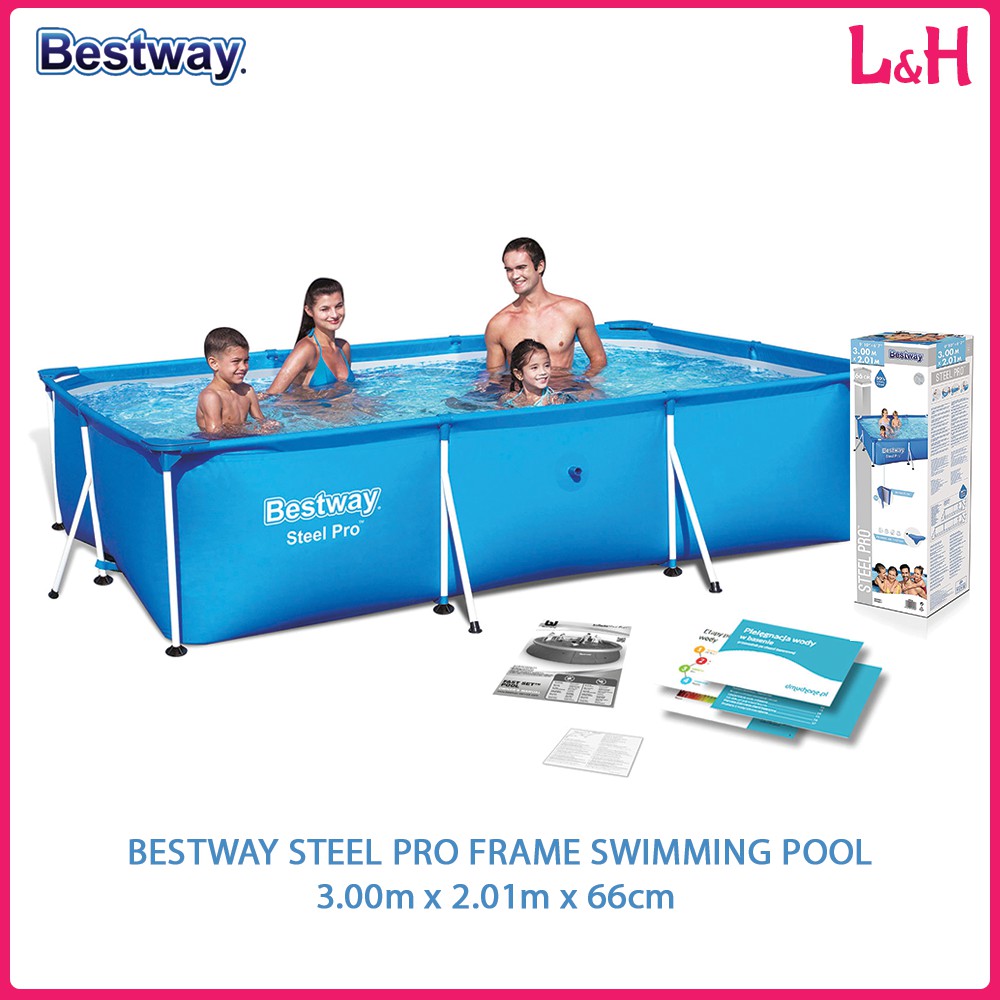 Bestway 3 00m X 2 01m X 66cm Steel Pro Rectangular Swimming Pool Set Kolam Renang Shopee Malaysia