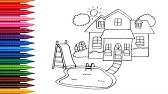 Cara Menggambar Dan Mewarnai Rumah Dengan Kolam Renang Untuk Anak Youtube