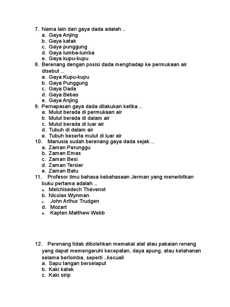 Renang Gaya Dada Education Quiz Quizizz