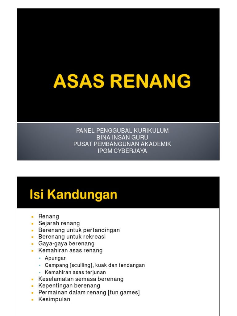 Asas Renang Panel Penggubal Kurikulum Bina Insan Guru Ppt Download