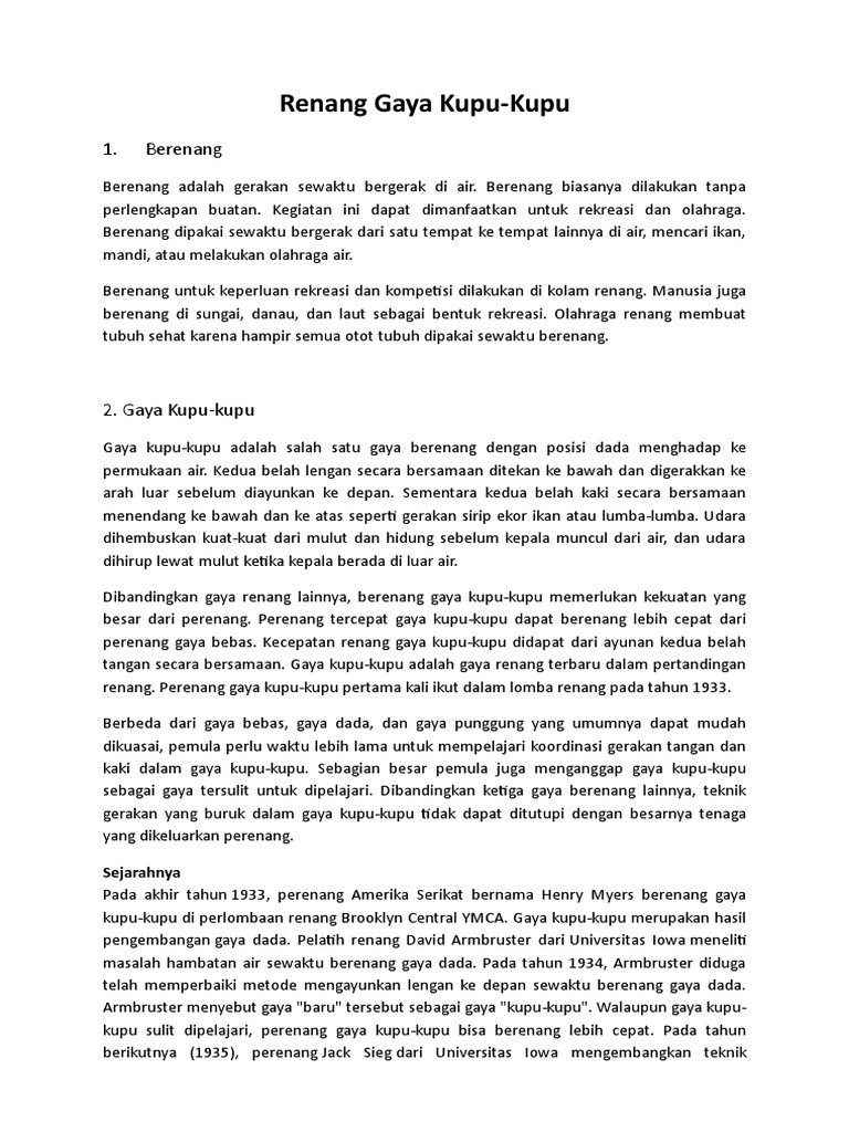 Makalah Renang Gaya Kupu Kupu Kaca Pengetahuan