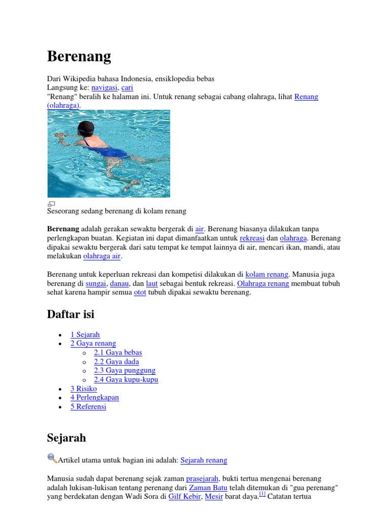 Sejarah Renang Di Dunia Indonesia Macam Gaya