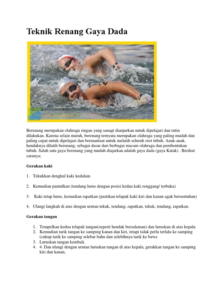 Doc Pengertian Renang Gaya Dada Katak Muhammad Miftah Academia Edu