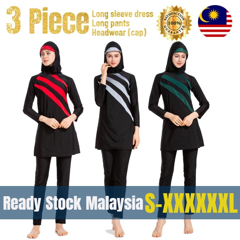 Ready Stock Malaysia Women Muslimah Swimming Suit 3 Piece Bigsize Swimwear Baju Renang Hijab Abstract Islamic Shopee Malaysia