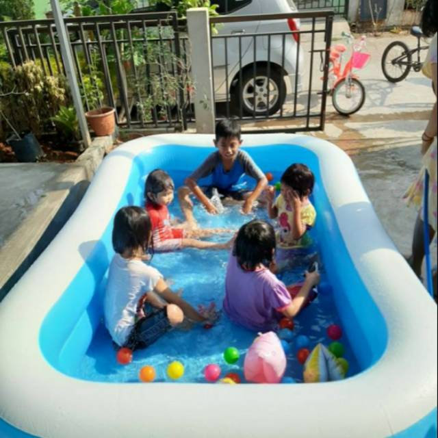 Kolam Renang Anak Jumbo Kotak Biru Besar 210cm Keluarga Swimming Pool Rubber Karet Family Kotak Shopee Indonesia