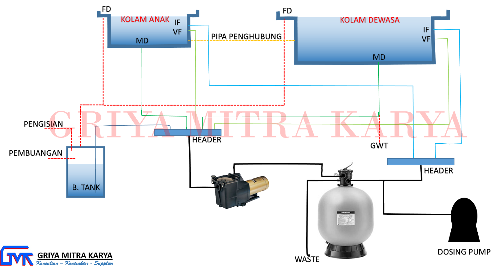 Air kolam renang yang melimpah tersebut tumpah kedalam saluran yang berada di sisi luar atau yang biasa disebut gutter overflow. Misalnya sistem sirkulasi kolam gedung di lokasi perkantoran kolam taman kolam renang umum kolam ikan dan kolam lainnya. Memahami berbagai sistem konstruksi dan salah satunya adalah sistem semi overflow. Perlengkapan mesin pada sirkulasi kolam overflow.