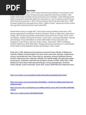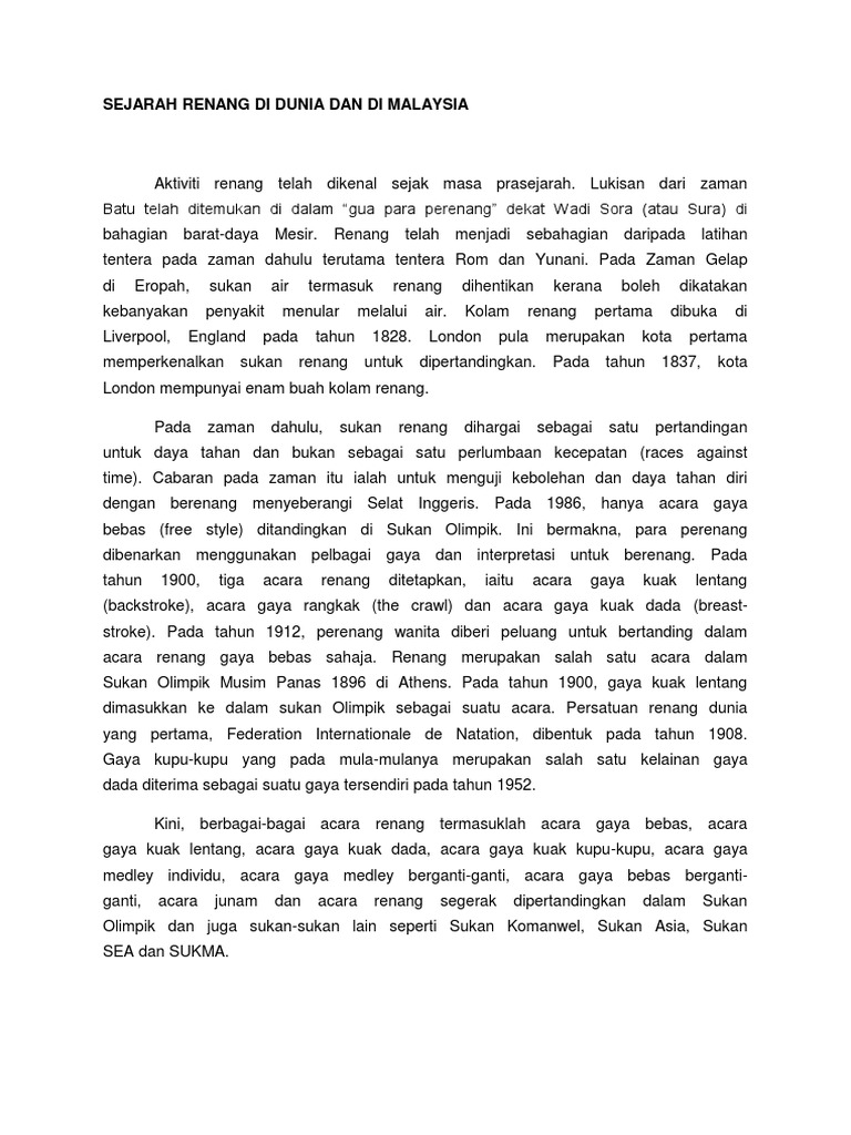 Sejarah Renang Di Dunia Dan Di Malaysia