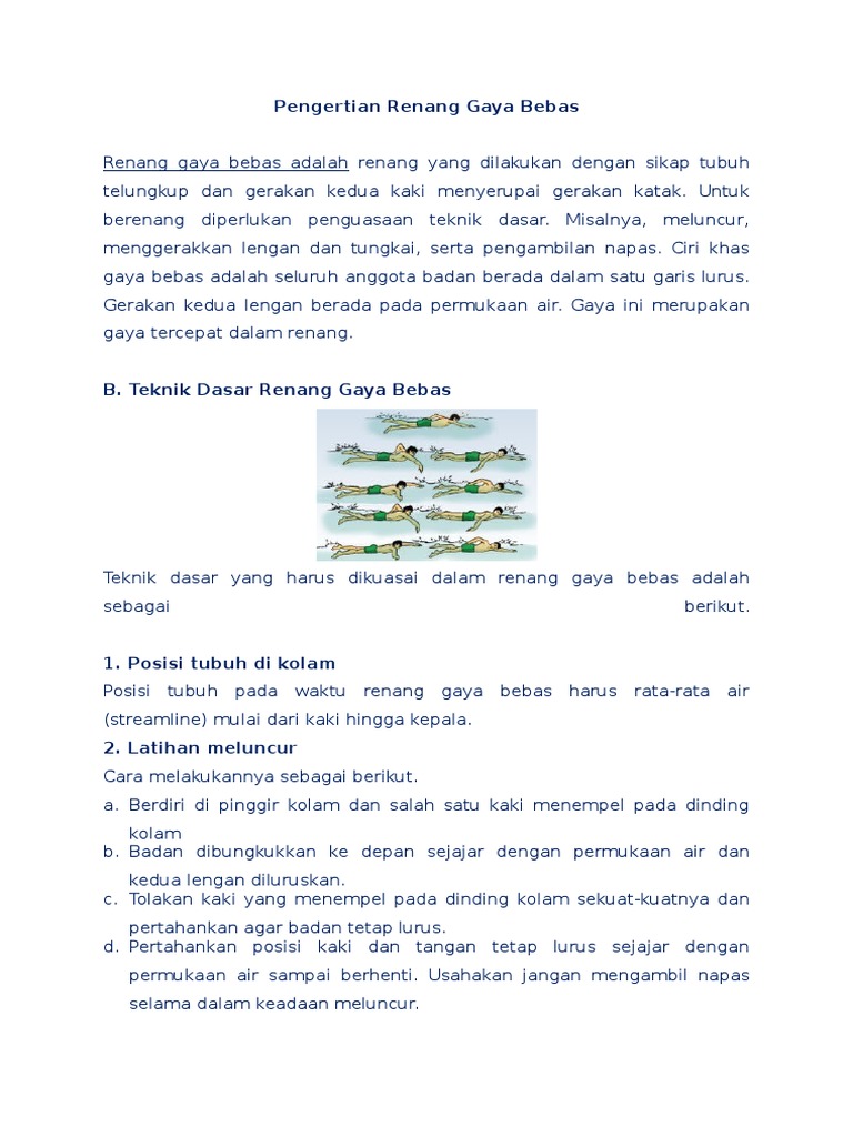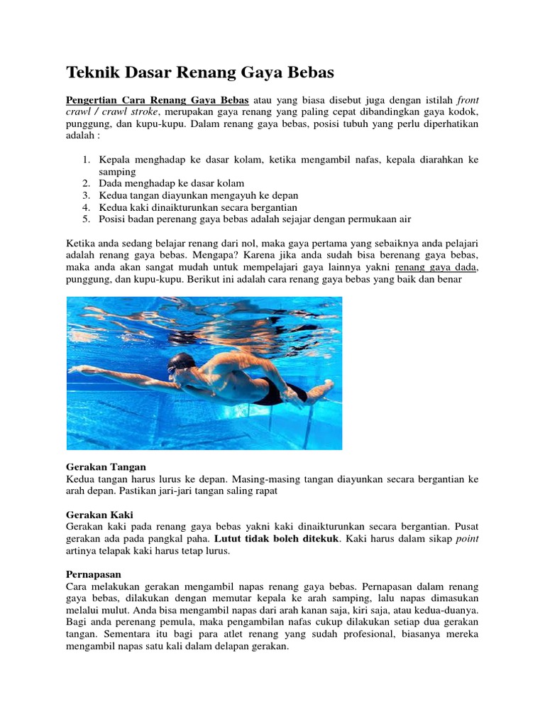 Renang Gaya Bebas Teknik Dasar Penjelasan Dan Gambarnya Perpustakaan Id