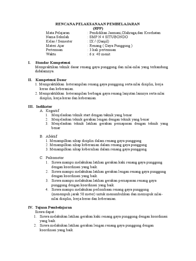 Rpp Renang Gaya Bebas Kurikulum 2013 Guru Ilmu Sosial