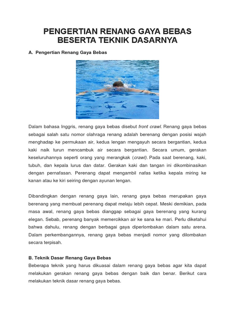 Teknik Renang Gaya Bebas Dan Penjelasannya Unik Inirumahpintar Com