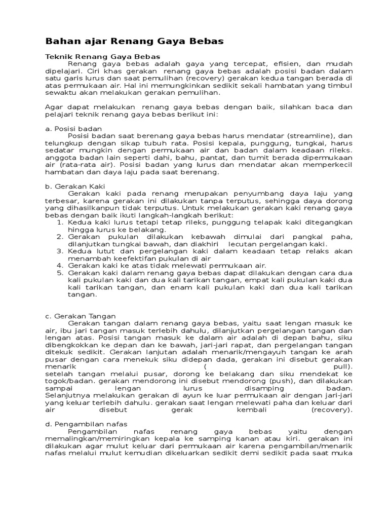 Bahan Ajar Renang Gaya Bebas Kelas X Docx