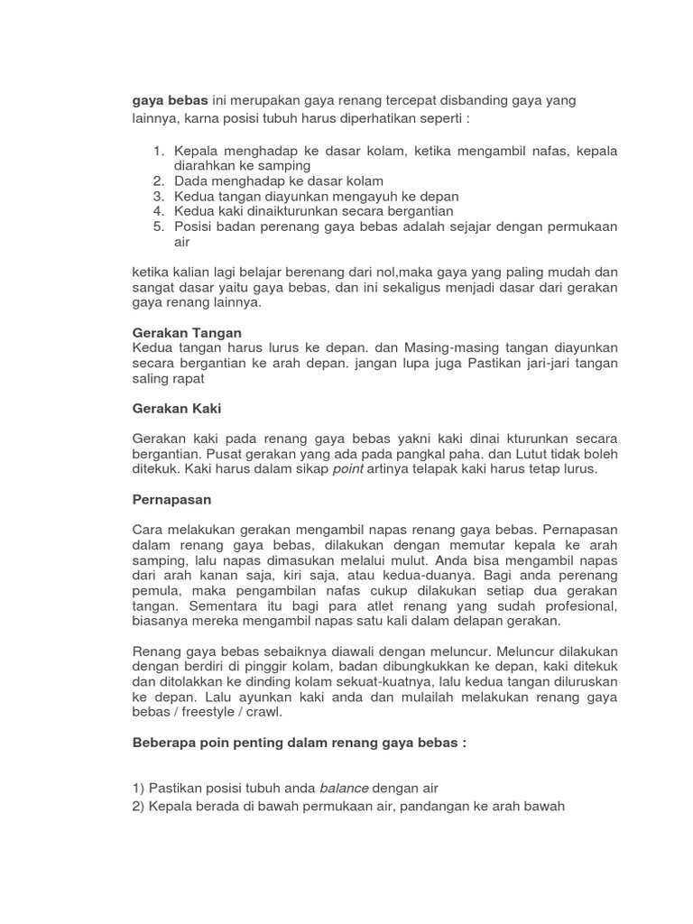 Makalah Renang Gaya Bebas Terlengkap Dediblog